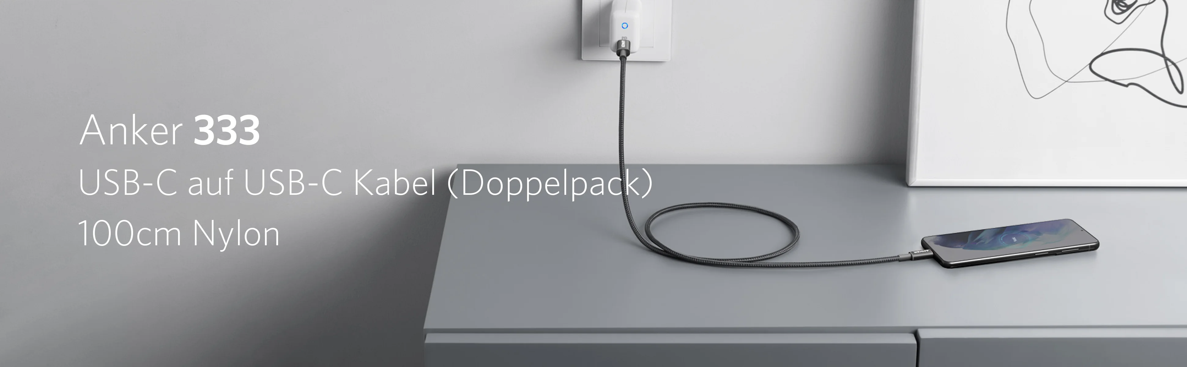 What you get: Anker 333 USB-C to USB-C cable (0.9 m double pack), a cable tie, an instruction manual